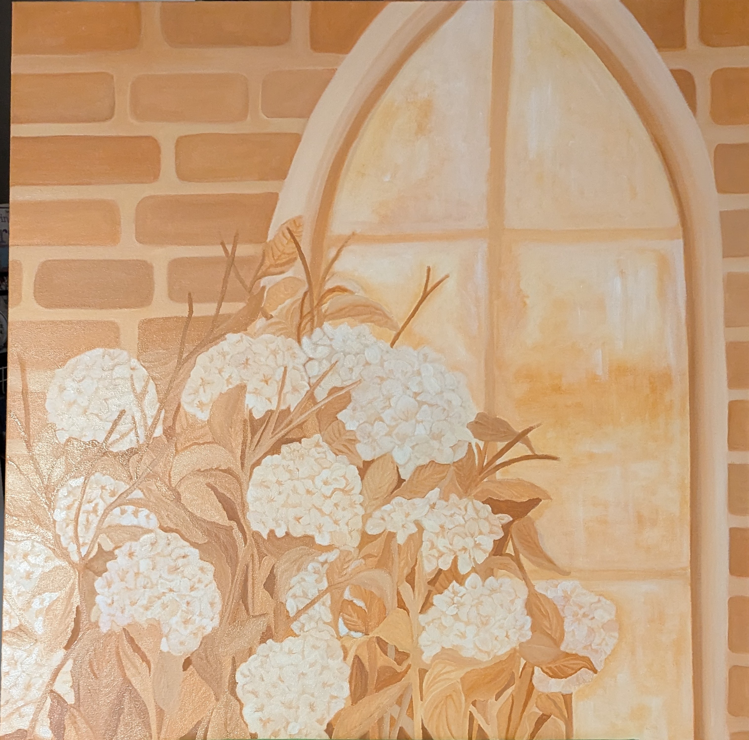 I love painting with oils. The sensory experience of loading my brush, the smoothness as I put my brush to canvas, and the butter-like glistening of the paint. I also like exploring and experimenting with other mediums- sometimes using them alone or in combination.